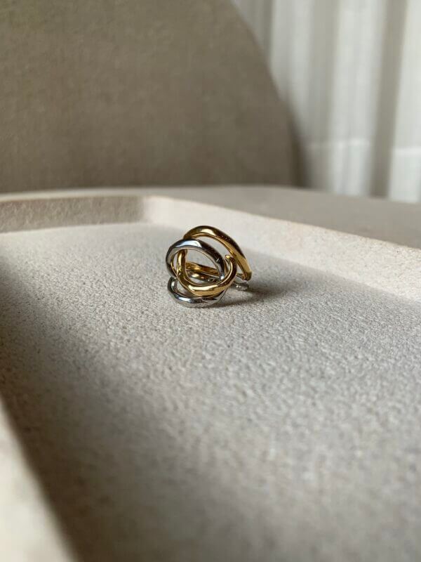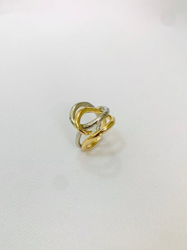 Características: 2 anéis com desing orgânico entrelaçados em duplo banho.