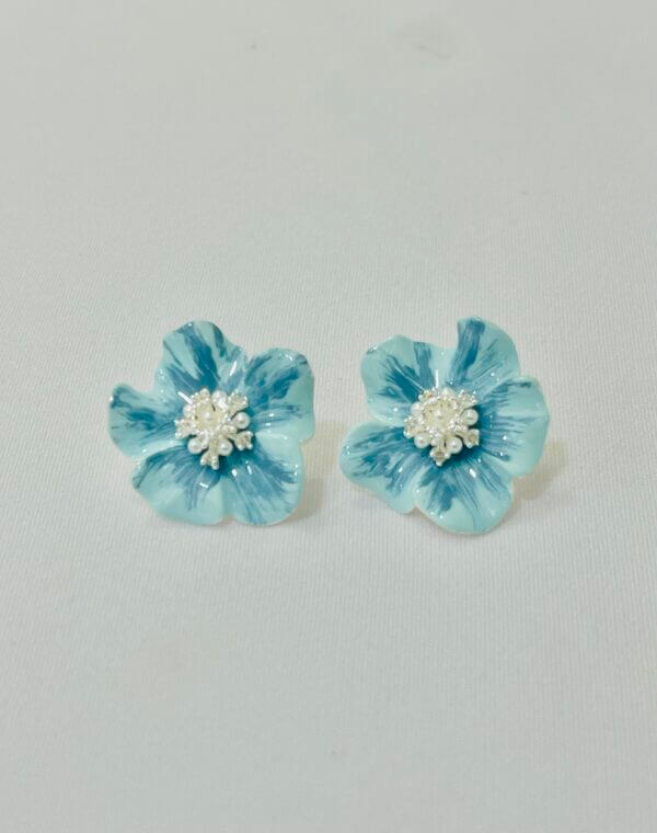 Brinco Resinado Azul Paula – em banho de ródio branco