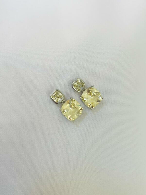 Brinco Quadrado Yellow – em banho Ródio Branco