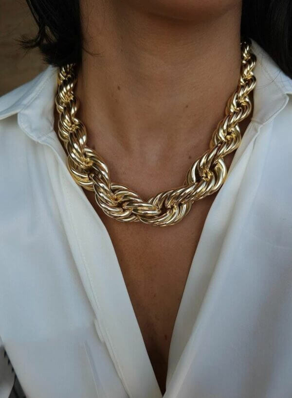 Caracteristícas: Choker de fios entrelaçados maximalista decrescente.