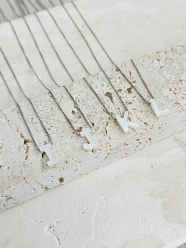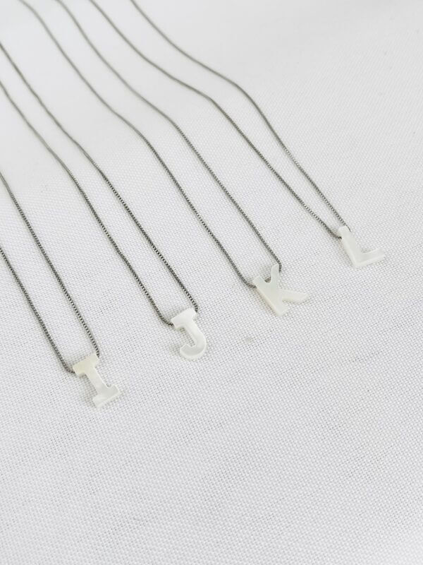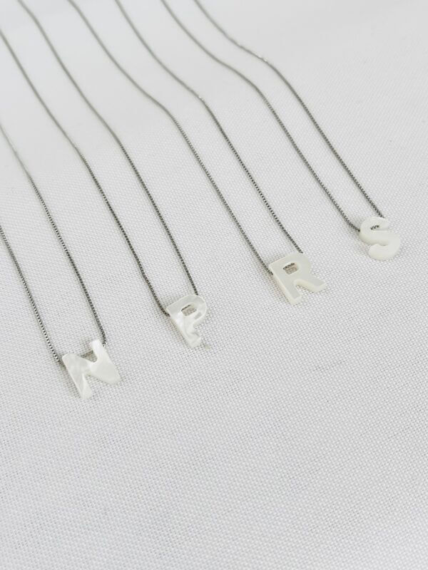 Características: Colar de letra delicada em madrepérola.