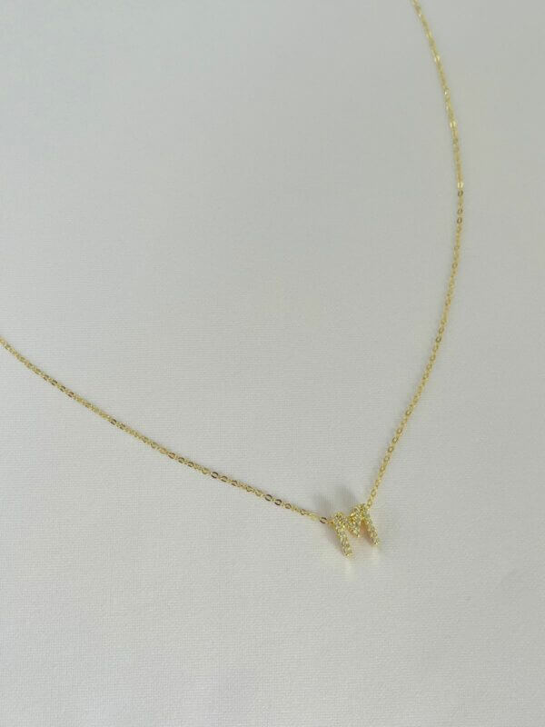 A inicial é delicadamente cravejada com pequenas pedras em zircônia, que adicionam um toque sútil de luminosidade sem perder a essência minimalista da jóia.
