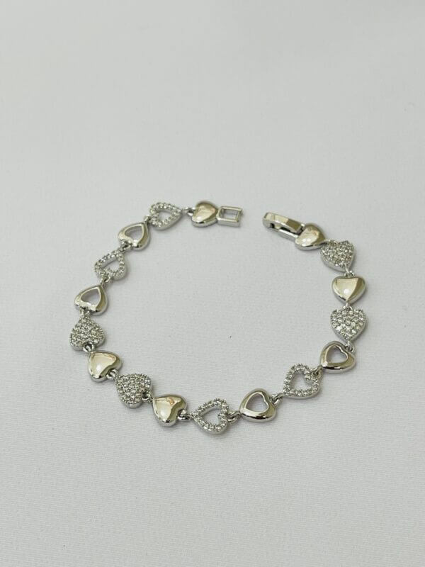Caracteristícas: Pulseira com corações vazados intercalados cravejados e lisos.
