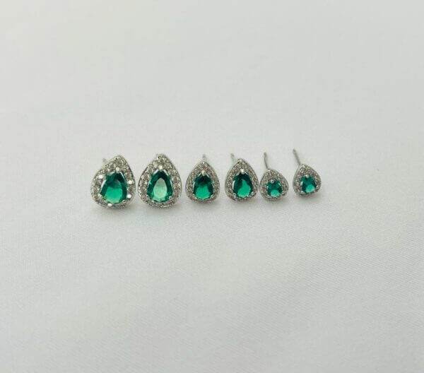 Trio Gota Verde Esmeralda Celina – em banho Ródio Branco